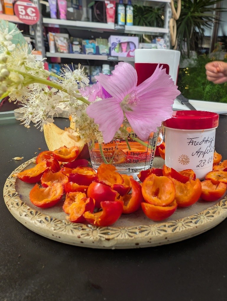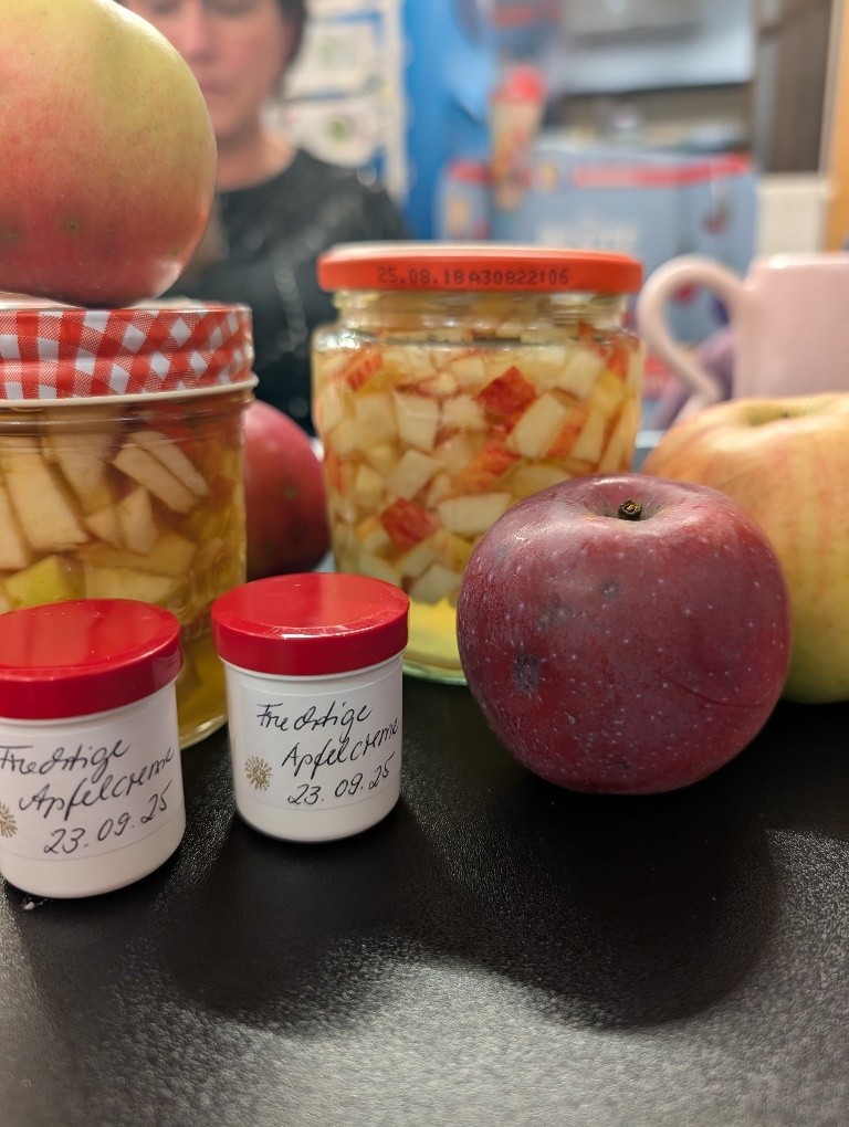 Deshalb war der Apfel ein willkommenes und wertvolles Thema für unseren Abend. Wir haben Apfelessig angesetzt, eine Apfelcreme als Naturkosmetik hergestellt und uns gutes veganes Apfelschmalz schmecken lassen.